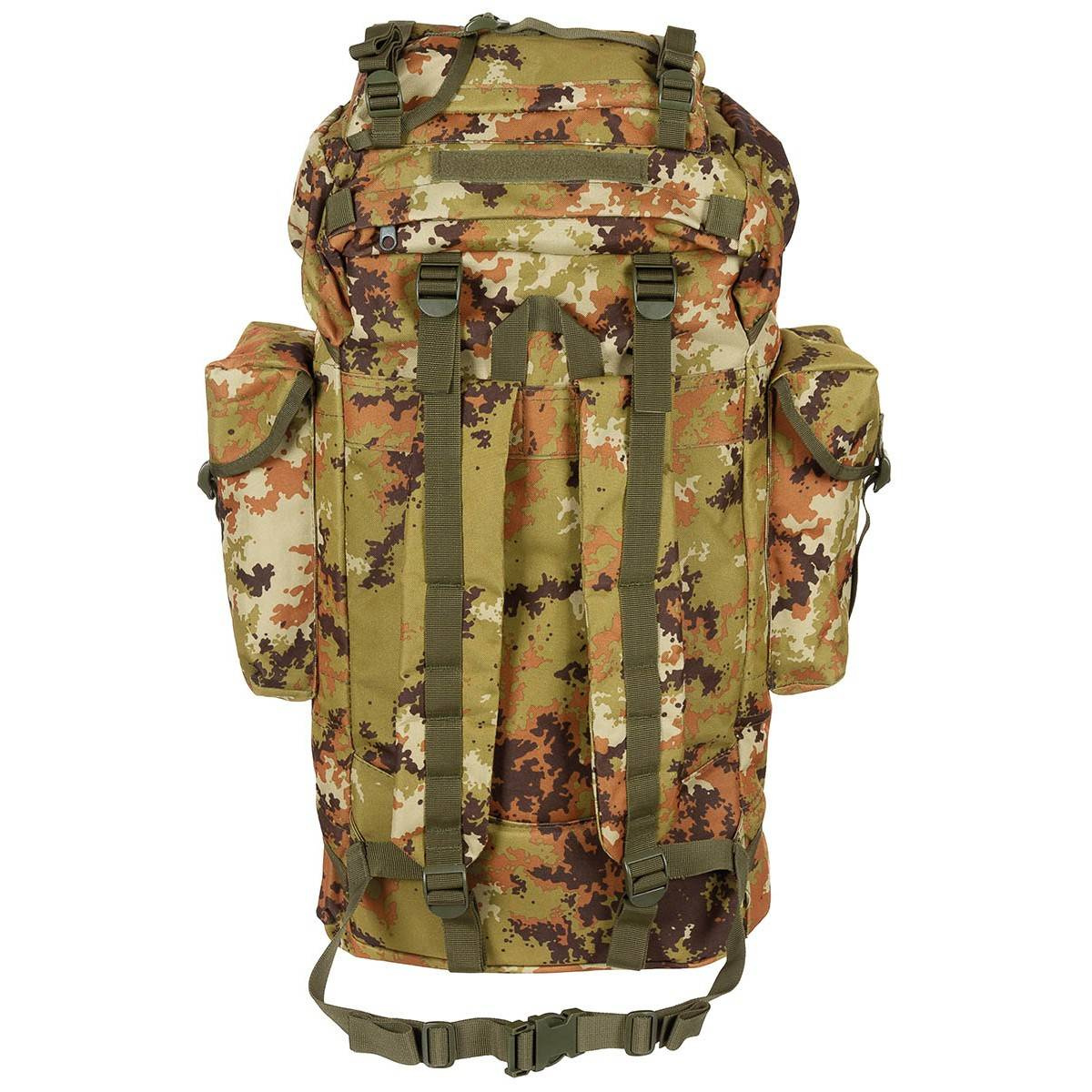 - lid with 1 attached pocket with flap and strap closure as well as 1 front slide-in pocket with hook-and-loop and 1 large zip pocket at the back