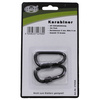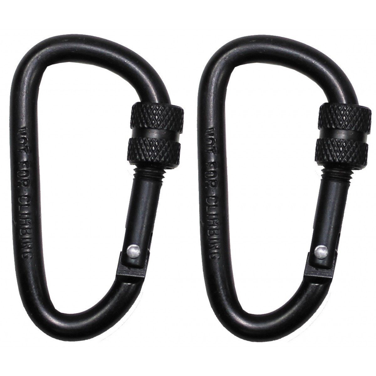 Set consisting of two D-shaped carabiners made of lightweight aluminum. A safety screw on the locking arm prevents accidental opening of the carabiner. These carabiners allow for quick and easy attachment of small items of equipment or accessories, such as keys, flashlights, gloves, or other necessary items.