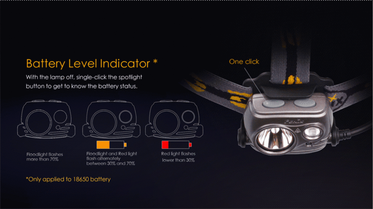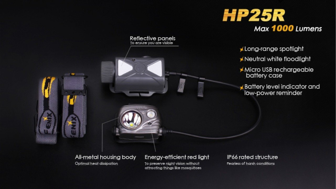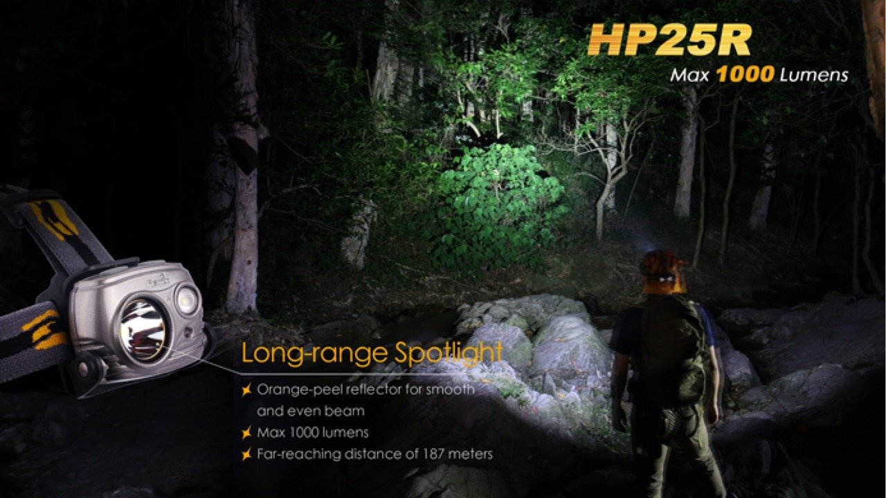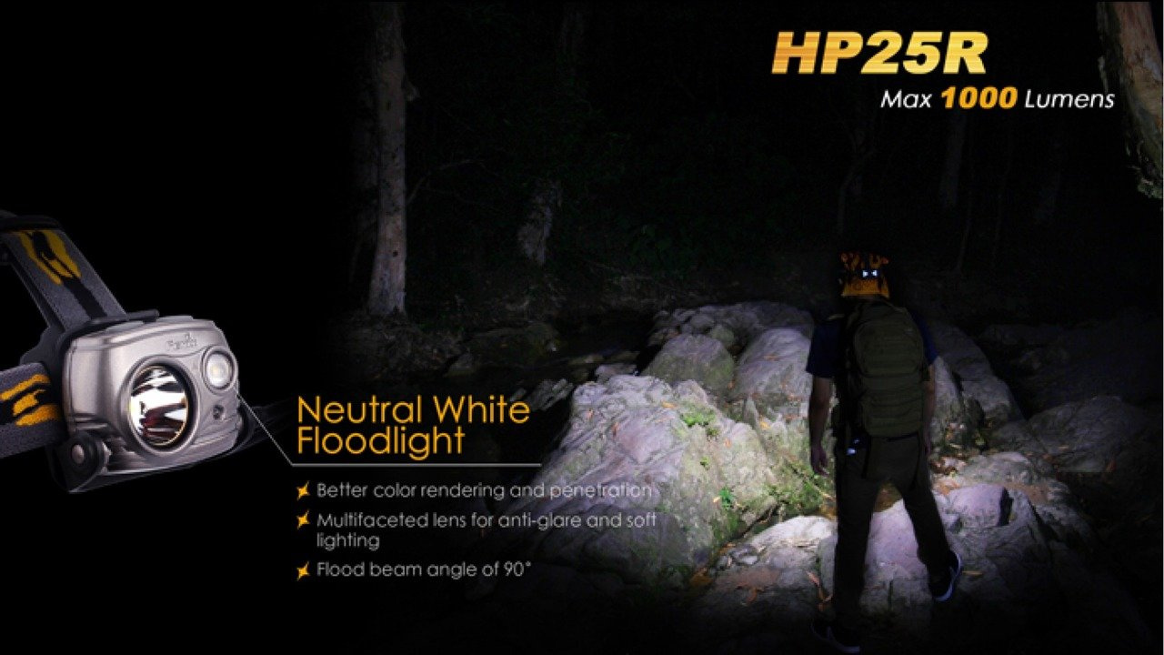HP25R defines extreme versatility. It features not only recharging capability, but also the handy combination of neutral white floodlight and far-reaching spotlight. However complex the environment may be, HP25R responds with impressive performance, whether it is in hiking, camping, searching, cave exploration and more. This user-friendly headlamp has a battery level indicator, and a micro USB port allows charging when your 18650 battery lets you down.