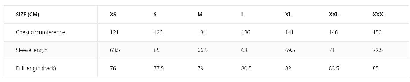 - Climashield® Apex™ insulation padding (weight: 100 g body, 67 g hood)