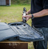 Double Upper Rifle Bag 18® was designed (as the name implies) to safely and comfortably carry a scoped AR-style rifle with an extra scoped upper, or two AR-style SBRs or two AKs in the basic configuration. The bag can be carried with four sturdy handles, or with detachable (and stowed in special pockets) shoulder straps. On the outside, there are three large pockets, each of them designed slightly differently. Each has a zippered pocket and velcro mounting panel to attach Versatile Insert System-compatible inserts. The main chamber of the bag has a ribbon loops system allowing velcro restraints to be placed anywhere they are needed to keep the weapon from shifting. Elastic loops would keep cleaning rods and cleaning accessories, and specially-designed restrain pockets would keep muzzles and buttplates securely in transport.