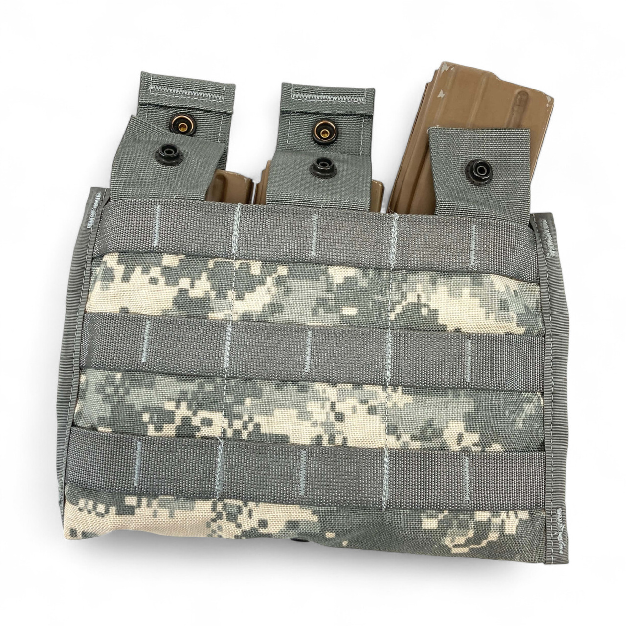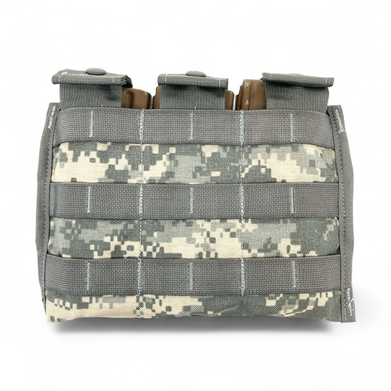 Triple magazine pouch, original US Army, used by the American armed forces, compatible with the MOLLE II system and manufactured in ACU/UCP (AT-Digital) camouflage. The pouch has sturdy fasteners, is water resistant and ensures secure attachment of magazines during use.