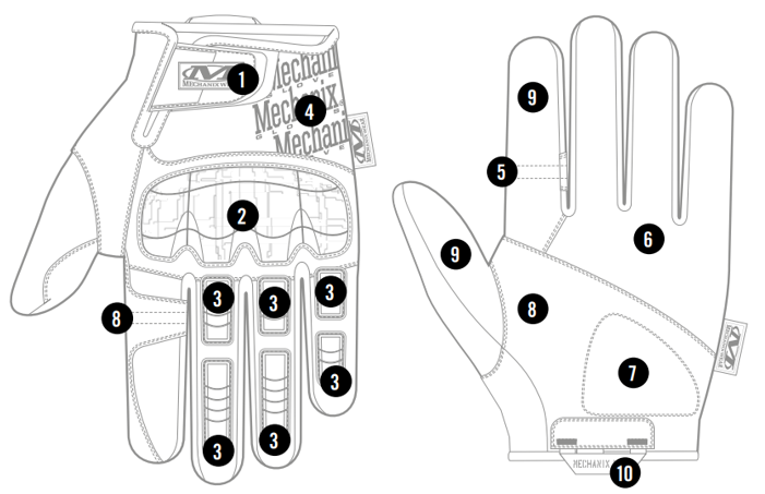 7. D3O® palm padding absorbs impact and vibration to reduce hand fatigue
