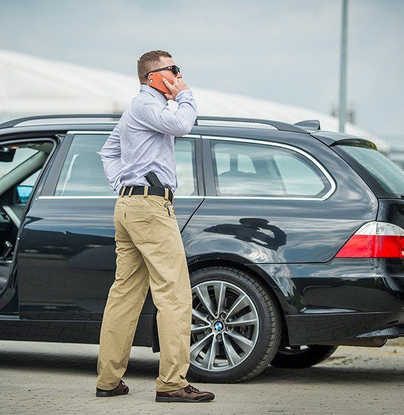 Covert Tactical Pants® are everyday wear trousers – discreet and non-flashy, yet extraordinarily functional. All tactical features are neatly disguised. Four magazine, holster or valuables pockets are sewn inside (two in front, two at sides). There are six external pockets, designed specifically for this model of pants, to carry EDC items comfortably. Wide belt loops are for a wide and sturdy gun belt, capable of adequately supporting holster. A suitable cut combined with expanding fabric provides exceptional ease of movement. The crotch gusset prevents wearing pants thin and allows ease of movement. The CTP® trousers would look as well with a sports or tweed jacket and with a hoodie.