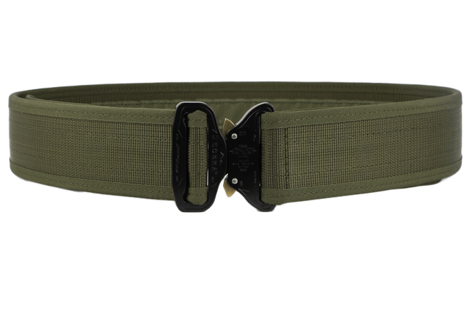 A heavy duty, two part belt. The inner, soft belt buckles together via a ABS plastic loop and a Velcro patch, which makes it highly adjustable and comfortable. It has a full length Velcro patch with which it can be attached onto the outer, hard carrying belt. The outer belt buckles with a Austri Alpin Cobra buckle that withholds 1835kg – this belt is made to hold.
