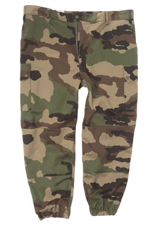 The French combat pants are made from a robust blend fabric with double seams. two side pockets and two buttoned thigh pockets provide plenty of room for personal belongings. With elastic band for the regulation of the leg openings.
