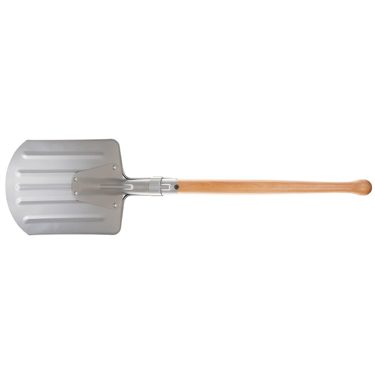 It is very light but also pretty strong. Good enough to shovel the snow in the winter and its a very handy tool to be left in the car.