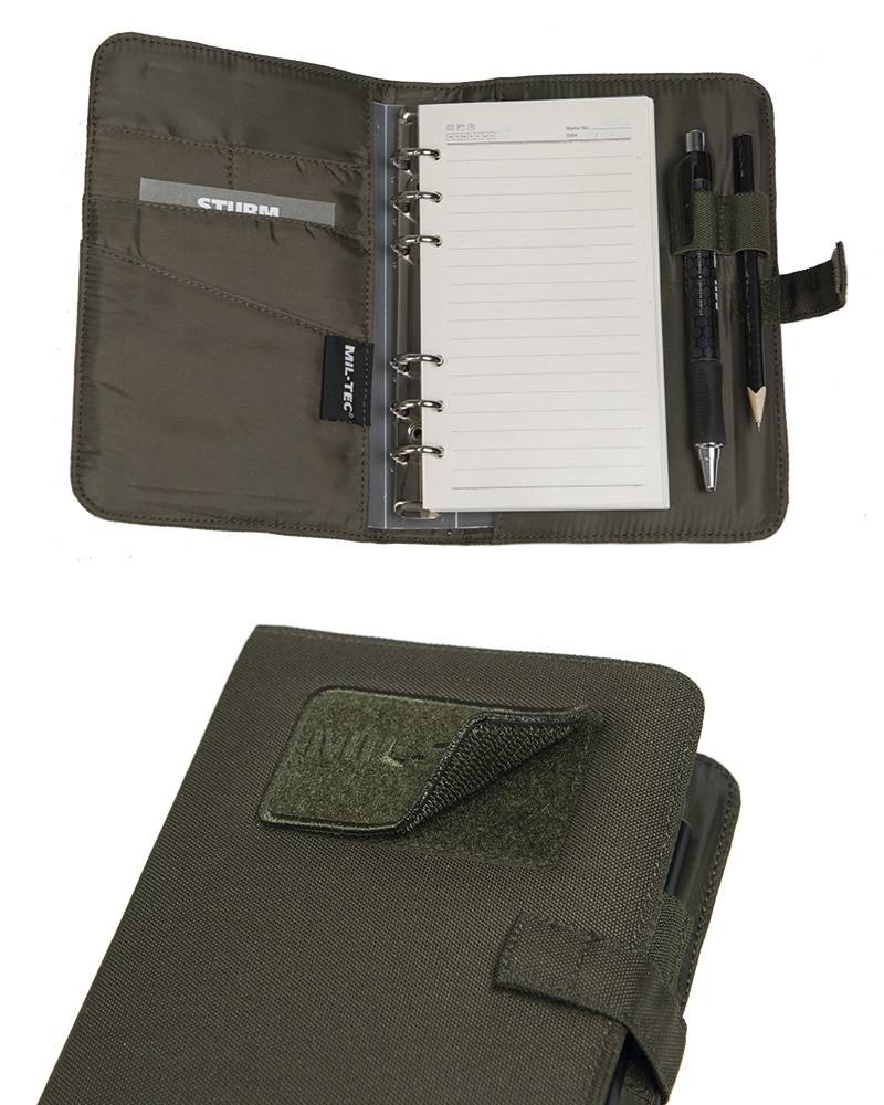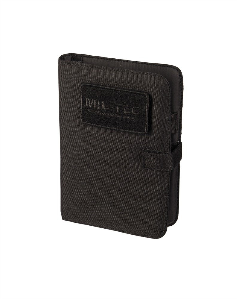 - tactical, upholstered notebook with hook and loop closure