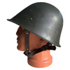 Romanian Miltary Steel Helmet. Introduced in Romanian Army use beginning with 1973, it gradually replaced model M38 and model M38/42 used by the Romanian Army in WWII and the Soviet M40 helmets, used after WWII. Its shape is inspired by the M38 model that it replaced (which was a descendant of the Dutch M34 helmet). Model M73 was manufactured from superior quality steel with good ballistic protection properties. The quality of the steel was enhanced by the peculiar shape which offers inclined slopes all aorund the helmet. The interior lining is made out of leather, with added padding made of horse hair or felt inside. The chin strap has four connection points and it is doubled uder the chin. In the back of the head it has a leather flap that can be adjusted to fit the head. In the back it has a slot for fixing on the haversack. The year of manufacture and serial number can be found under the leather lining. Romanian Military Surplus.
