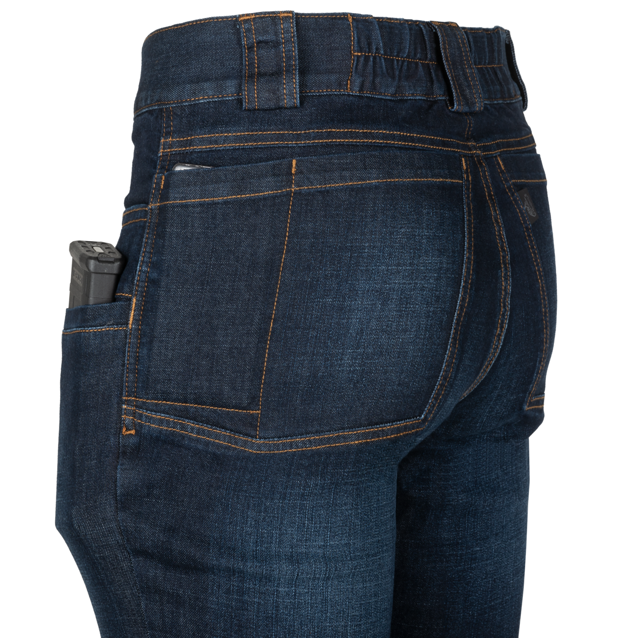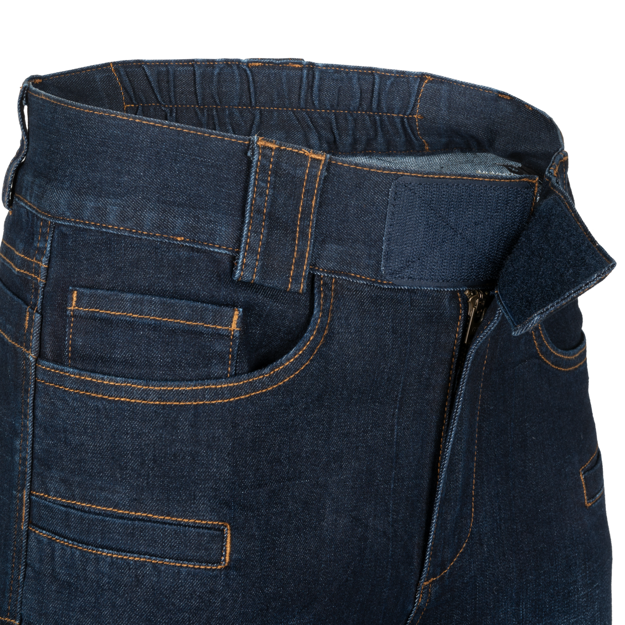 The Greyman Tactical Jeans® are a combination of the tactical features and low profile look. Crotch gusset gives ease of movement and higher durability. Integral belt is elastic and fastened by hook & loop to allow adjustment. Belt loops would take up to 50 mm wide belt. Nine pockets: two main classic pockets on front, two smaller front pockets, four back and one inside the front right pocket.