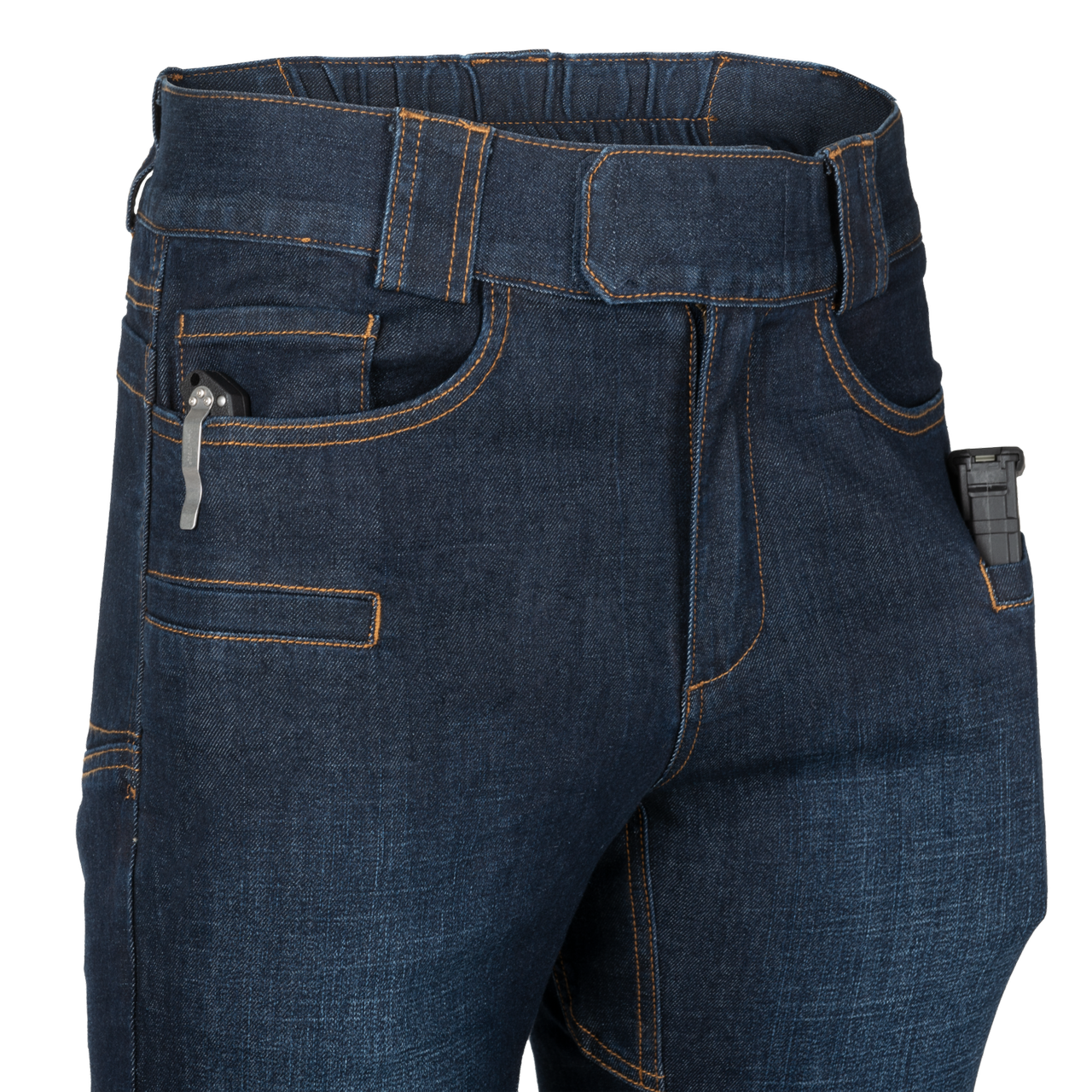 • Helikon-Tex®'s high-quality Greyman® tactical jeans are comfortable and durable with an adjustable elastic waistband, 50mm belt loops, 9 pockets and YKK® zipper.