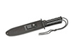 This impressive survival knife will make the user feel at home in their local woods. The 20 cm long blade made of 440A steel features a saw on the blade spine. The hollow grind accommodates a survival kit that will help users tackle smaller adventures. The blade is screw-mounted to the handle and features a screw cap with a lanyard hole. The survival knife is shipped with a nylon sheath with a small sharpening stone.