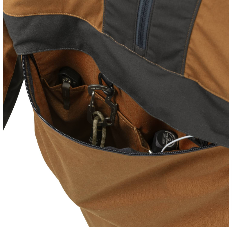 Based on the Mistral Anorak, Woodsman Anorak jacket is made of DuraCanvas® - the fabrics more suitable for outdoor and camping. The front is made of DuraCanvas® fabric, therefore it is fire-spark resistant and durable enough not to be damaged by sharp objects and branches. The back of the jacket was made of StormStretch® fabric, to provide higher breathability and better freedom of movement. The whole jacket is highly wind resistant. Woodsman anorak has three pockets, including one kangaroo on the front with internal organizer. Sides are fully zippered up to the arm pits to provide easy don and doff. The side zippers can also be used as ventilation. Additionally the jacket has adjustable, hood with visor.