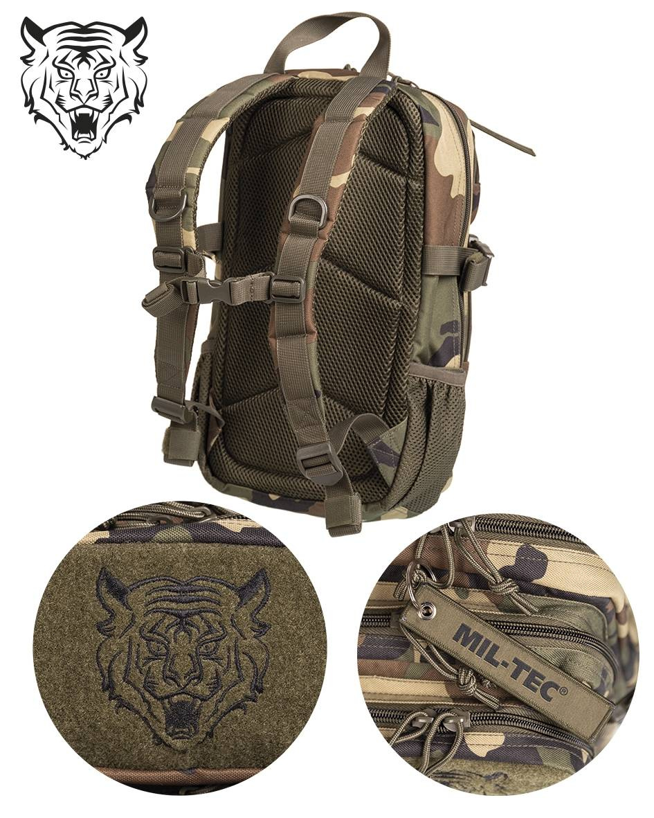 • Practical and ergonomic Assault backpack for kids, from german producer MIL-TEC, made of Polyester, with 14 liter capacity, ideal for day-to-day use or outdoor activities.