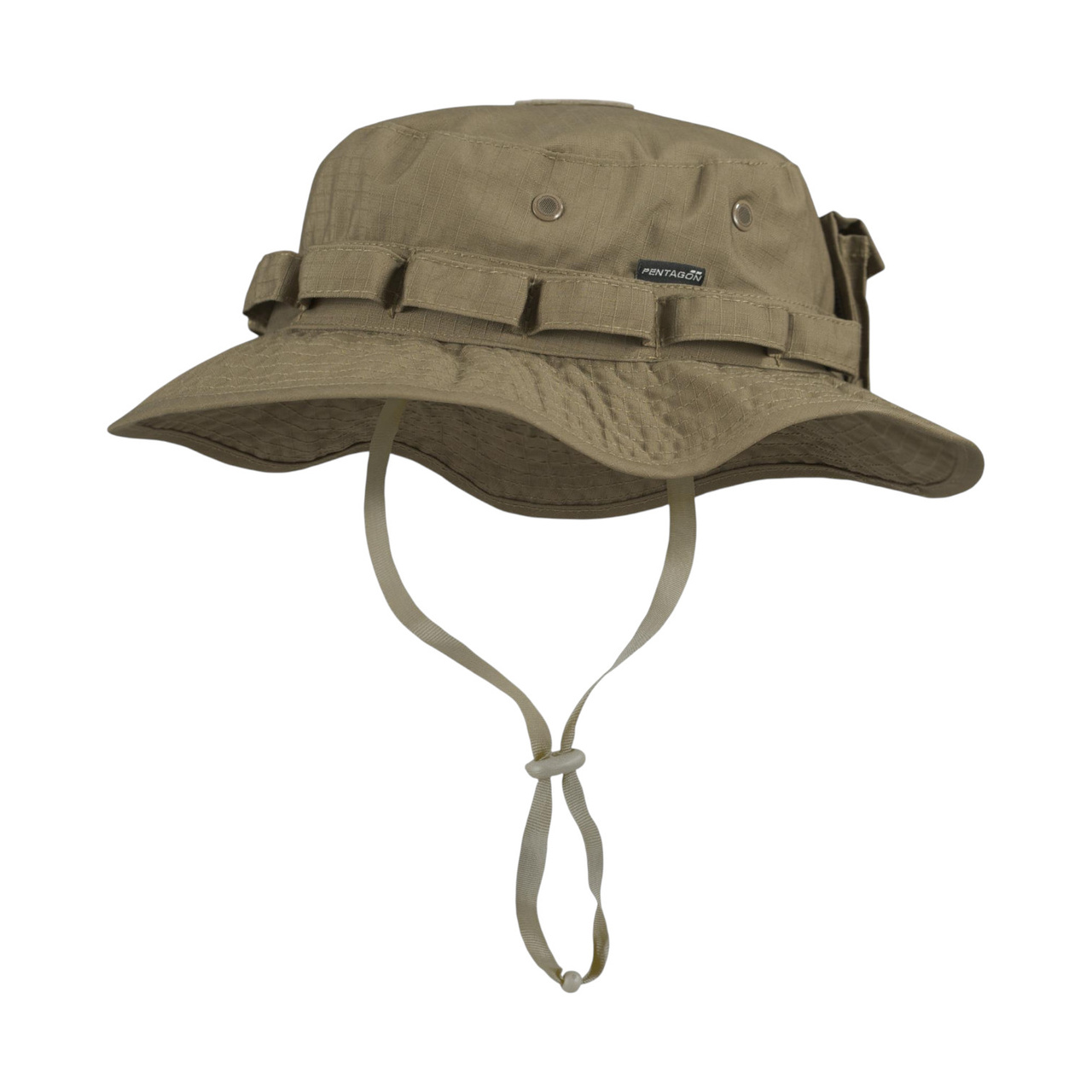 High quality Boonie hat "Jungle", with classical branch holding loops around the crown of the hat, O-rings for ventilation with insect repellent gauge, a Velcro Patch on the top for your IR Patches and a removable back pocket for small utilities. If you don’t need the back pocket, you can easily remove it since its fixed with Velcro so you have a nice space to fit your favorite moral patches.The base of the hat is double fabric stitched which gives more insulation to the warm sun rays.