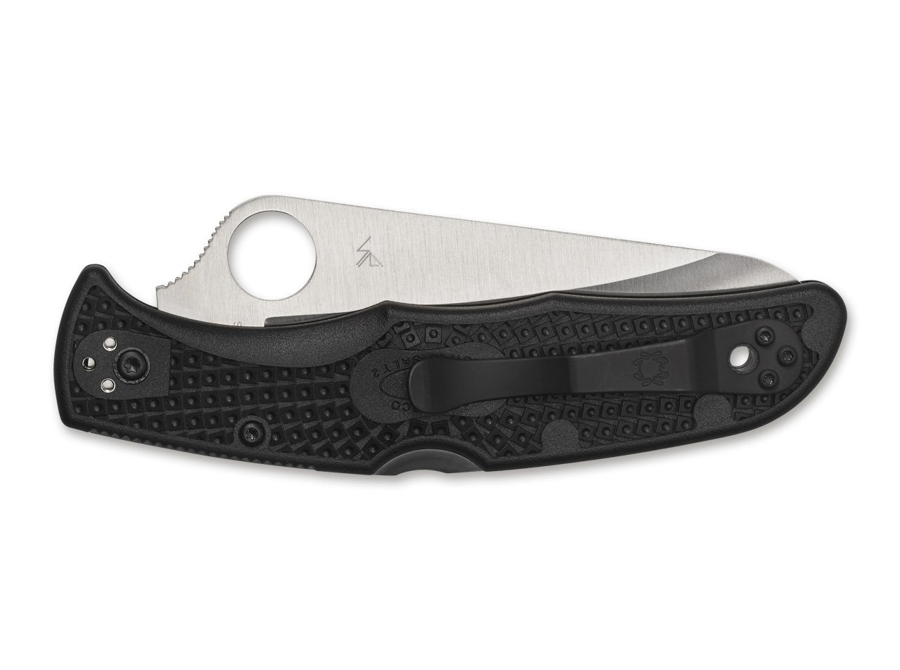 The redesigned Spyderco Pacific Salt 2 is a pocket knife developed specifically for users who spend time in and around water. The serrated H1 coated blade can even be used indefinitely in saltwater. The steel, which was developed in Japan, combines exceptional corrosion resistance with superb edge retention and has a hardness of 57 to 58 HRC. The handle structure and ergonomics have been given a hefty upgrade compared with the original version. In terms of dimensions and design, this pocket knife is comparable with the Endura, but has a slightly more rounded tip. The other steel parts of the knife have also been specially treated to make them more resistant to rust. The textured FRN handle, backlock and enlarged SpyderHole make it easy to use when wearing gloves. With four-position reversible titanium clip.