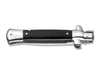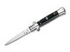 The Magnum Sicilian Needle is a classic Automatic Knife based on a historical design. The Stiletto has been the best-known Italian pocket knife for decades and was manufactured in the Maniago region as early as 1910. The 440A blade is automatically opened with the rich, world-famous clack by actuating the side parry element. The handle scales are made of dark plywood.