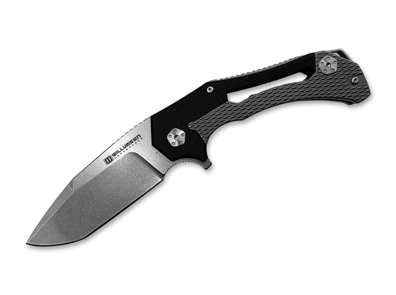 The modern Tyranic stone black from Willumsen gains trustworthy respect with its massive blade made of 440C and the solid handle made of G10 and stainless steel. His rule over any cutting work in everyday life, the knife is humorless with the Flipper administration. Only the frame lock tames the dashing pocket knife in its madness. With clip (Tip-Up / R).