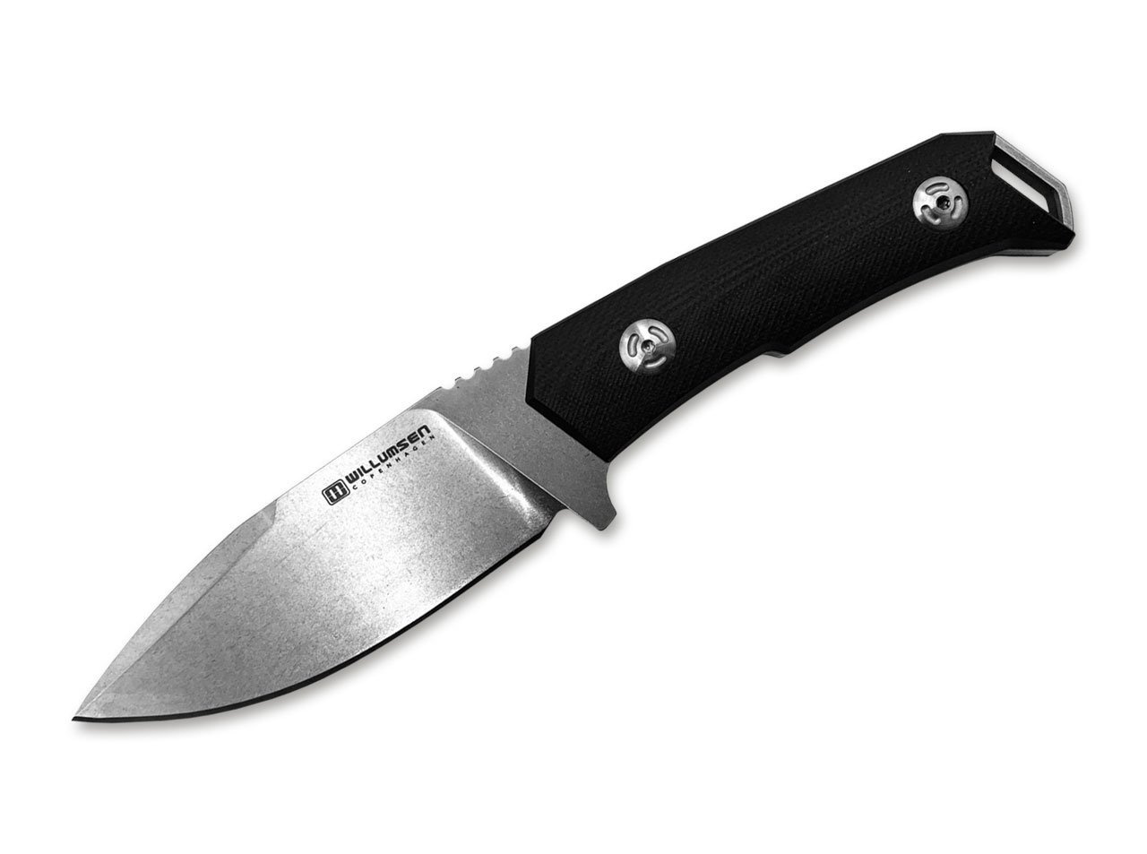 The Willumsen Despot Stone Black is a slim, fixed knife with a strong backbone made from high-quality AUS-8 and is therefore ideal for demanding cutting tasks on robust materials. The knife has a nice rounded handle made of G10 with a lanyard for a firm hold at all times. With kydex sheath and belt clip.