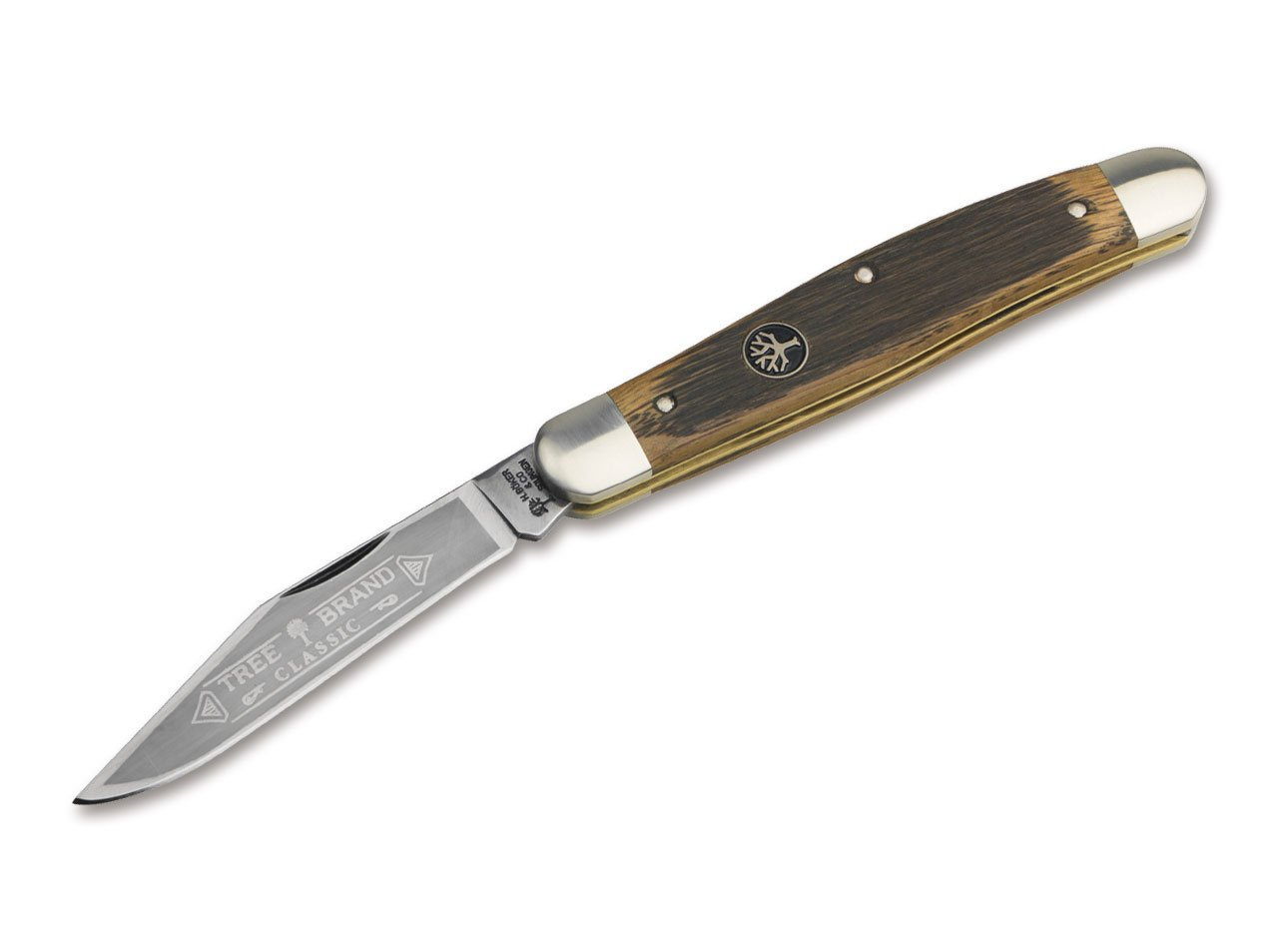 The slim Boker Stockman is extremely popular not only on the American market. As a handy slipjoint pocket knife, it is perfect for everyday use and has therefore been a fixture in countless trouser and jacket pockets for generations. It is equipped with a blade made of non-stainless C75, which convinces with its outstanding cutting durability and easy resharpening. The blade is provided with an elaborate etching, is opened with two hands by nail nick and does not lock. The noble handle scales are made from the unique oak wood of time-honored whisky casks, which after decades of storage are now allowed to take on a new task. Handmade in the Boker knife manufactory Solingen.