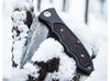 The third generation of the Boker Leopard-Damascus Pocketknife. Entirely manufactured by hand, the gun barrel steel is forged with a tool steel (chrome-, manganese- und vanadium-alloyed) and the bearing steel 1.3505, to over 300 layers of Damascus steel. The result is a Leopard-Damascus blade with incomparable cutting properties and a hardness of 61- 63 HRC. In each blade, the three different steel types can clearly be distinguished. The handle of CNC-milled AlMgSi1 aluminum is hardcoat anodized in olive grey and stands in beautiful contrast to the dark grenadilla wood inset, which is certified imported. Without flipper. Includes nail nick and reversible pocket clip. Delivery in frame case and with certificate, for a pleasing presentation in the showcase.