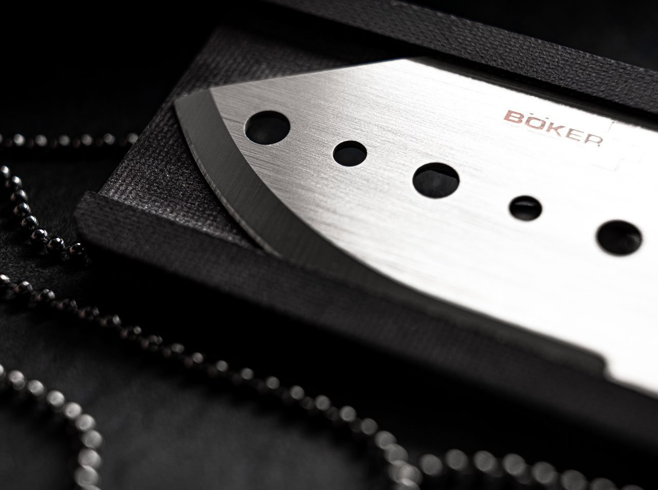 John Kubasek is well known for his unusual designs and often extremely flat builds. The Boker Plus Slyde-R follows this concept, surprising with a floating blade that is unlocked with a button and pushed out of the front of the handle. The unusual knife is locked with the same button, which makes it very easy and intuitive to handle. The satinized blade consists of 440C and has a one-sided grind to fit perfectly into the G10 handle. Comes with a ball chain. Without clip.