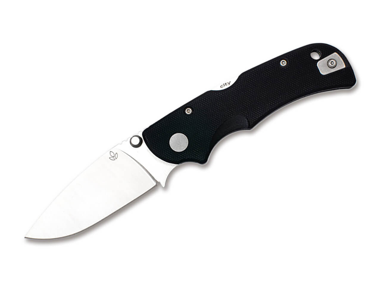 The Manly City CPM-S90V Black is a handy everyday knife with some interesting sights. The blade made of edge-holding CPM-S90V is the emblem of the EDC knife and is controlled by a thumb pin. With a backlock, the blade disappears into the non-slip G10 handle and plunges into the nightlife.