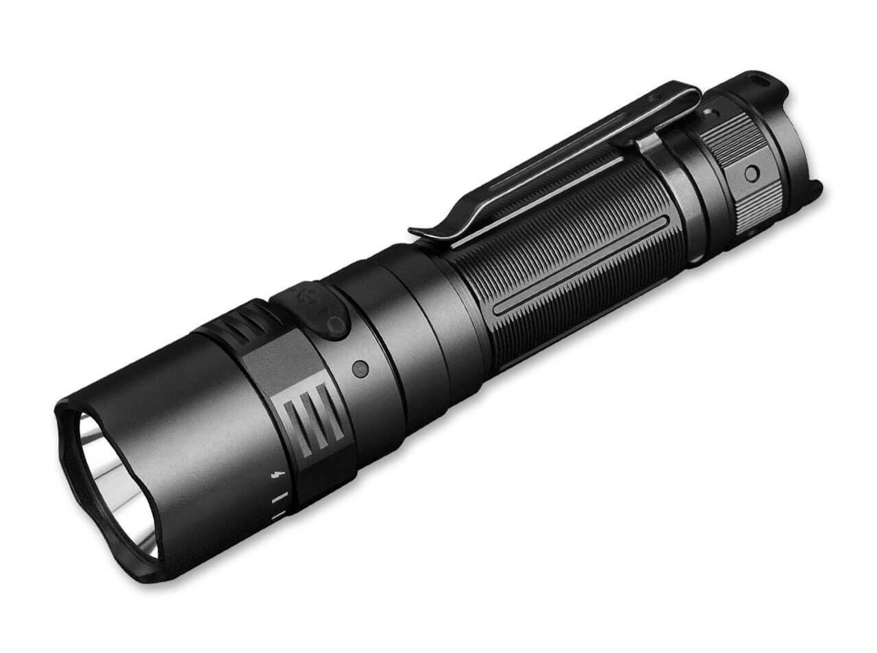 The Fenix PD40R V2.0 LED Flashlight is up to the toughest outdoor uses. The high performance rechargeable battery can be recharged via a USB Type-C port and delivers a brightness level of 3,000 lumens for 2 hours and 40 minutes, and in low mode 88 hours at 30 lumens. The sturdy aluminum housing is toughened and proves very handy even in adverse conditions. The patented rotary switch allows precise adjustment of the brightness levels. With clip, holster, lanyard, rechargeable battery, O-ring and USB cable.