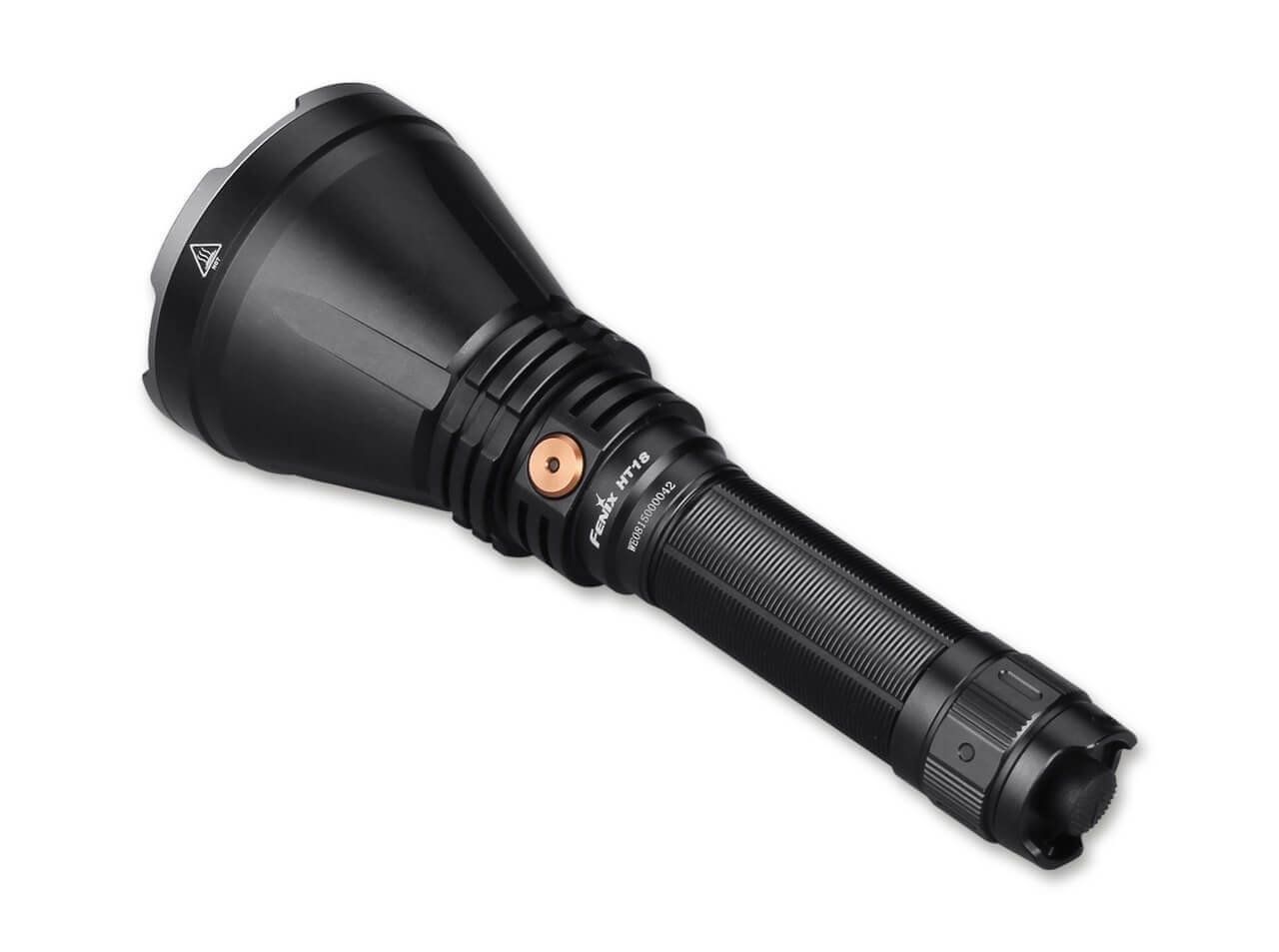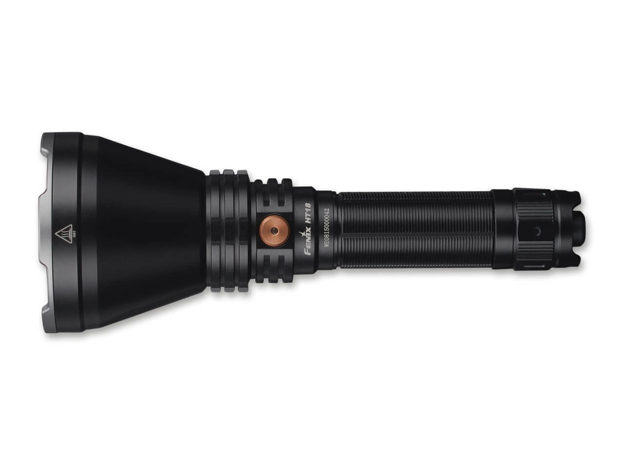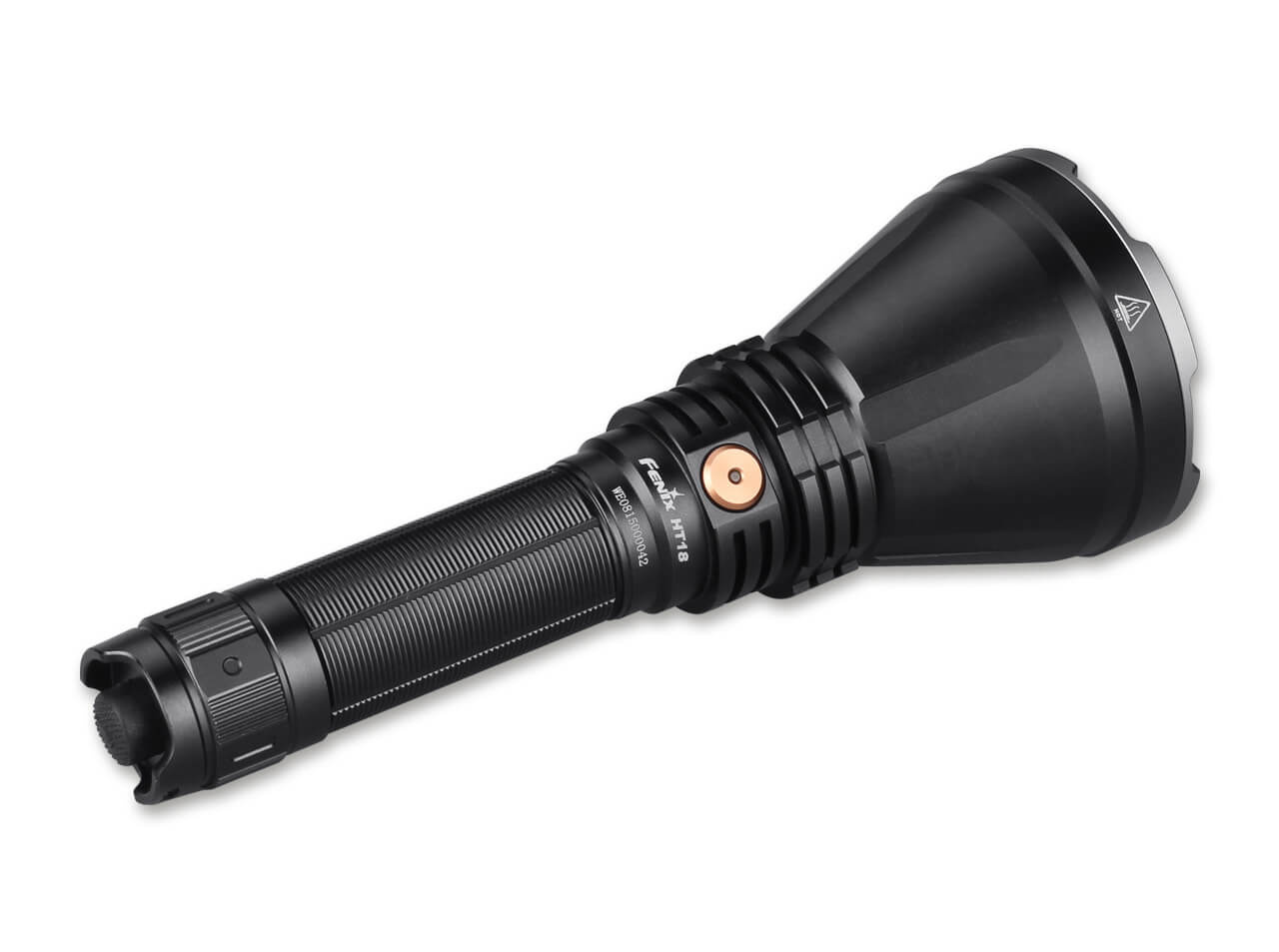 The Fenix HT18 is a 1500 lumen flashlight specially designed for hunting. It offers a wide range and convenient operation. Thanks to the included color filters, different hunting situations can be mastered without any problems. The HT18 is designed for operation with a rechargeable 21700 Li-Ion battery, but can also be used with the included ALF-18 adapter with a rechargeable 18650 Li-Ion battery.