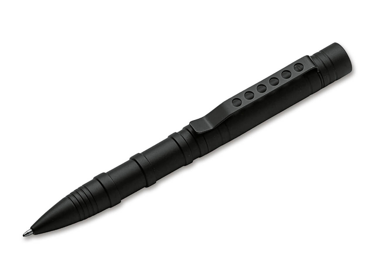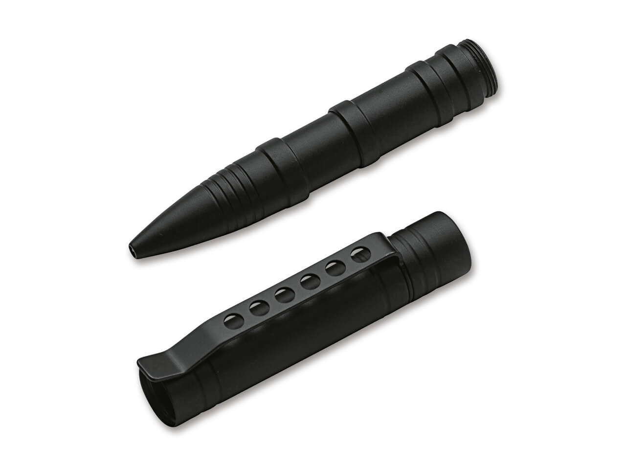 The Boker Plus Quest Commando Pen, designed by Kevin Passon and David Cyr, is made out of lightweight yet sturdy aluminum and serves as a perfect outdoor tool. The robust Tactical Pen is compatible with Lamy M-22 refills. In addition to its function as a pen, it can also be used to store matches and other small pieces of equipment. A small compass sits on the end of the practical hollow handle and can be used for navigation in an emergency. For writing, the bottom part of the pen turns to the right, for changing the ink cartridge in the opposite direction. With the sturdy clip, the Quest Commando Pen is always at hand.