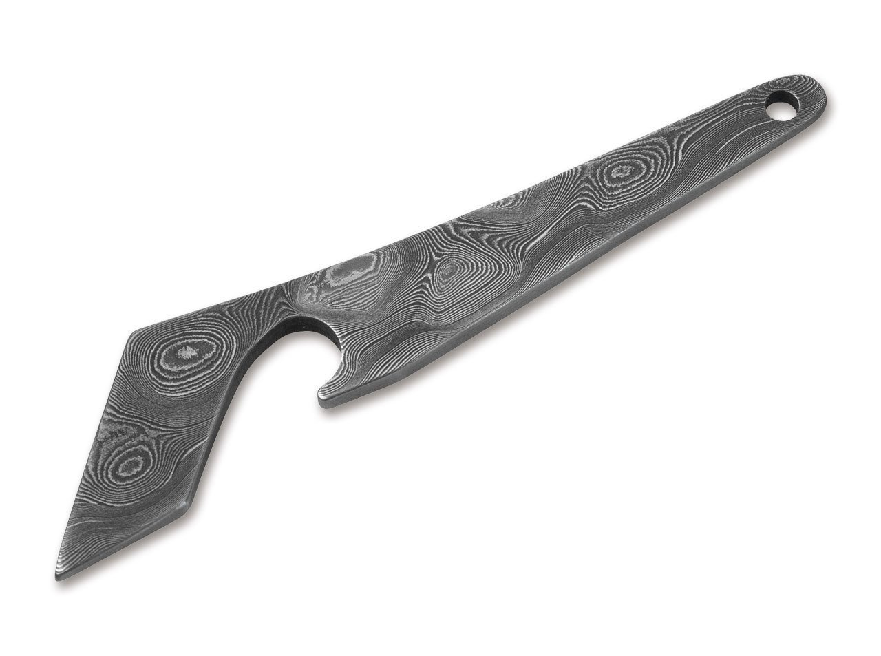 The noble Boker bottle opener made of hand-forged Leopard-Damascus cannot be resisted by even the most stubborn crown cork. Thanks to the high-quality Damascus made of 300 layers of armoured steel, nothing stands in the way of enjoyment! With an eyelet for a key ring or a lanyard. Handmade in the Boker Knife Manufactory Solingen.
