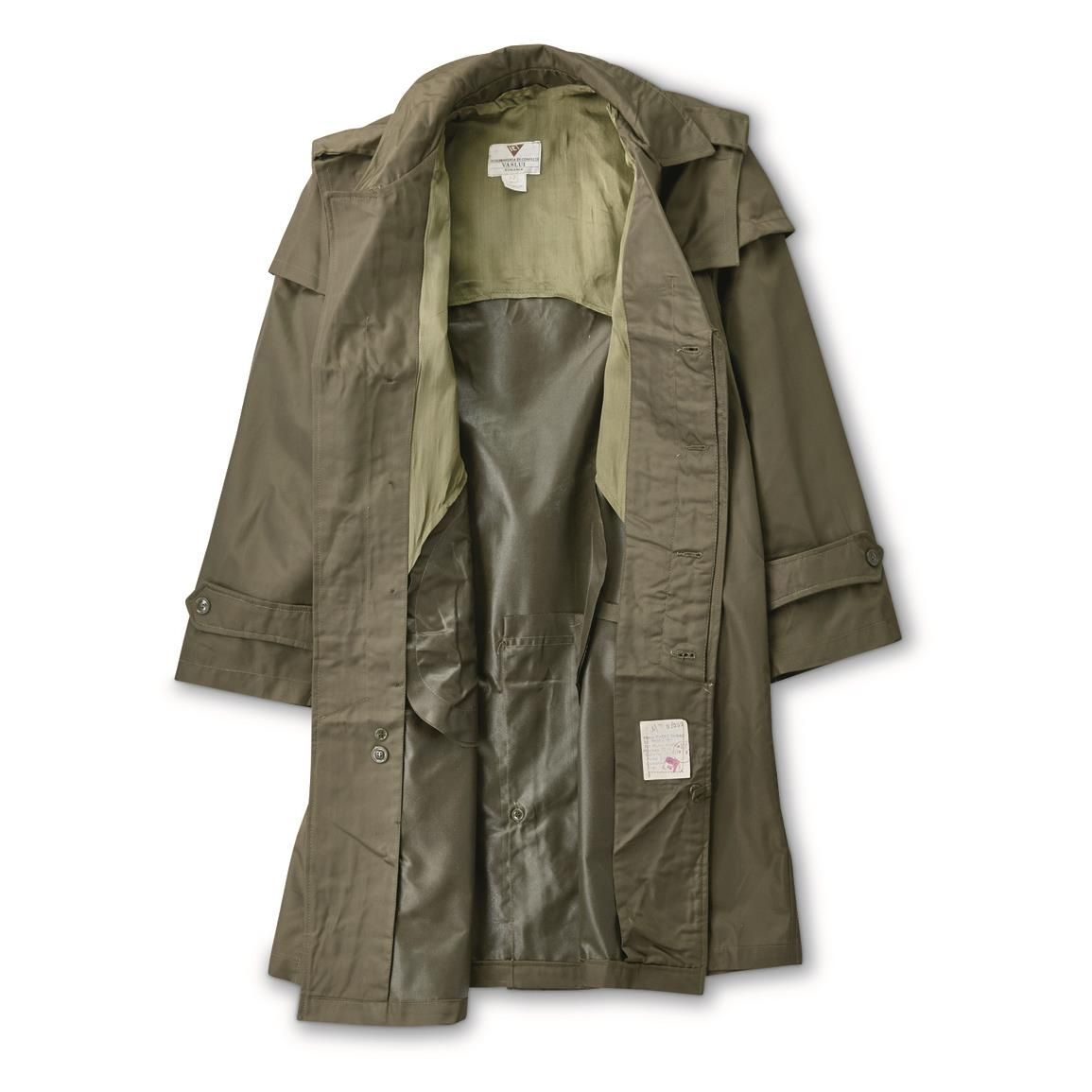 - rain trench coat, a military surplus of the Romanian army, made in Romania;
