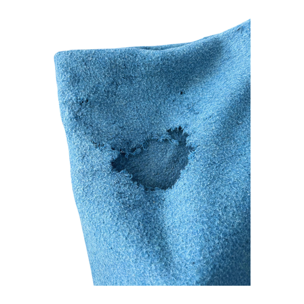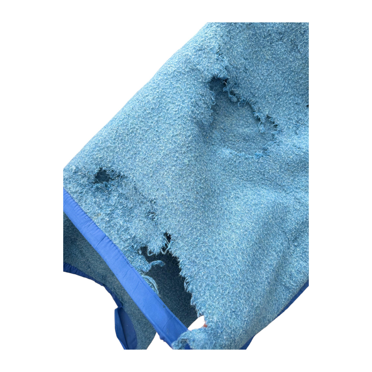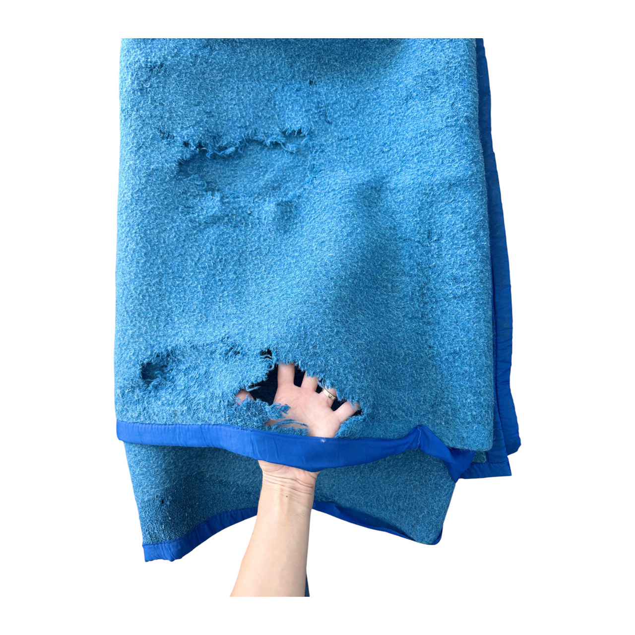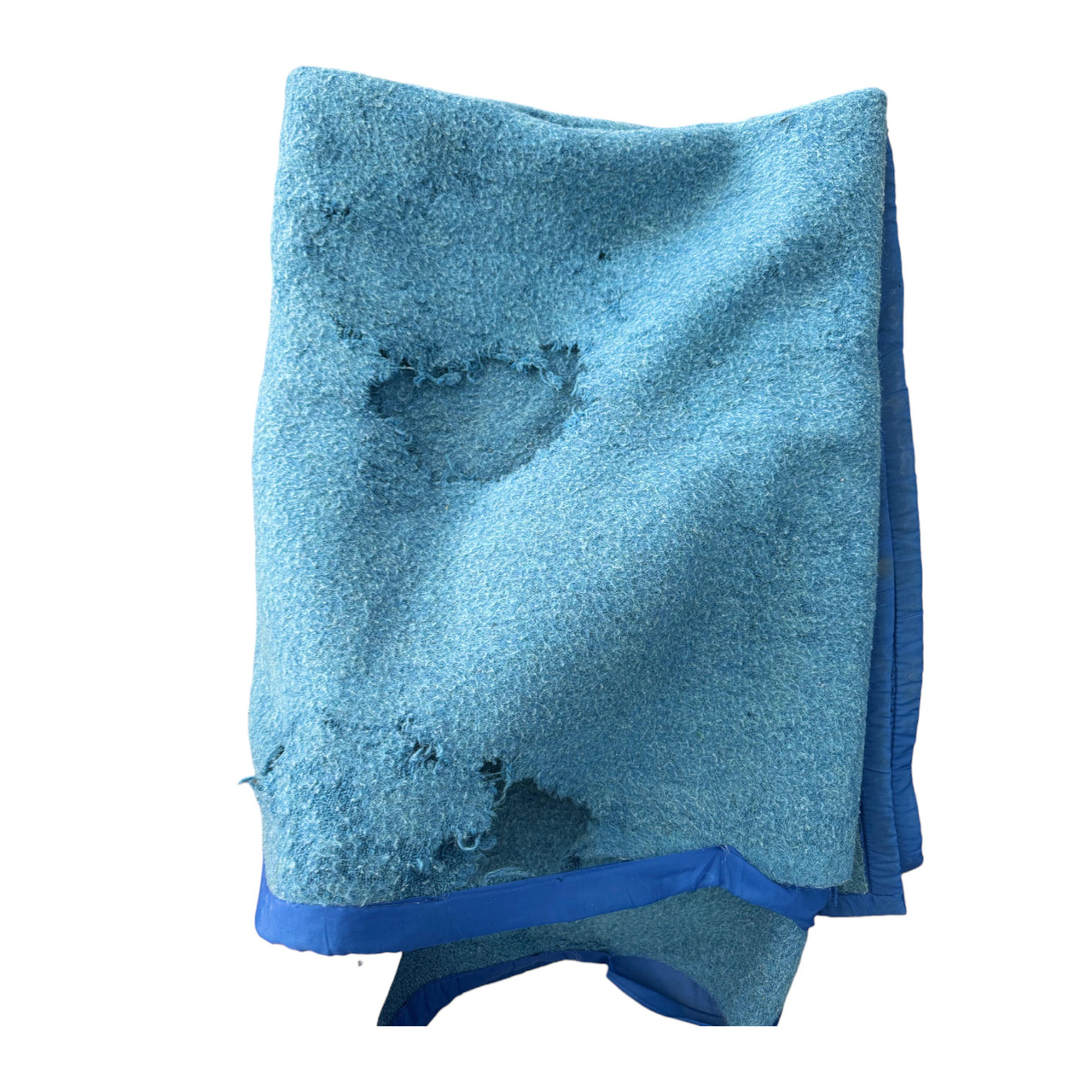 Degraded: The blanket may have tears, cuts, larger holes caused by moths, large stains, embossing, pronounced discoloration, thinned areas of the fabric, or unpleasant odors caused by long storage.
