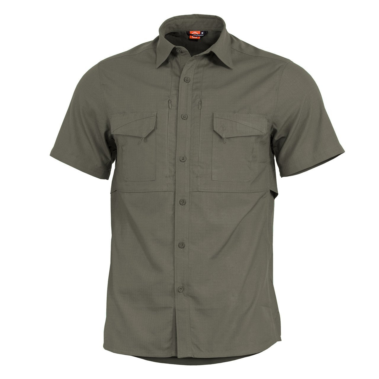 Tactical re-designed short sleeve shirt, for tactical or outdoor use. Lightweight, confortable, with concealed chest pockets with hidden zippers for a low profile look.