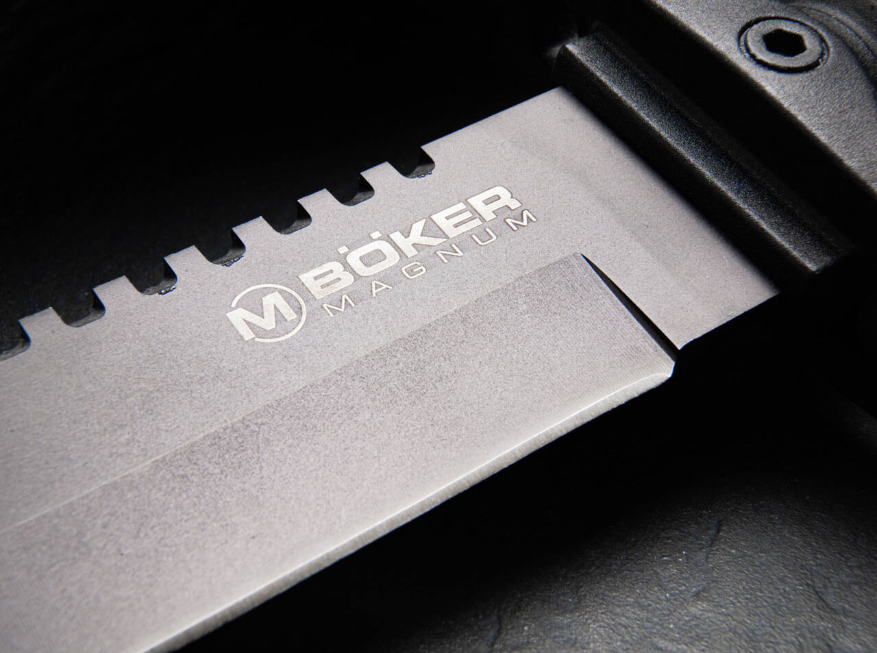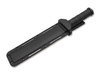 The massive Magnum John Jay Survival Knife is an impressive survival knife in the spirit of the knife class established by Jimmy Lile and made famous worldwide by the film Rambo in 1982. For reasons of stability, however, the Magnum JJSK is not equipped with a controversial hollow handle, but has a solid handle made of indestructible FRN. Thanks to the additional rubber coating, the non-slip handle always lies securely in the hand, even in wet conditions, and the symmetrical parry element further increases safety at work. Openings in the hand guard allow the knife to be fixed with string, wire, cable ties or fabric adhesive tape, so that it can also be used as a makeshift spear, for example. The powerful Bowie blade made of stainless and shock-elastic 7Cr17MoV is coated in black and additionally equipped with the typical back saw. The perfectly fitting black plastic sheath offers a wide range of fastening possibilities on clothing and equipment thanks to numerous openings, while the actual belt loop is designed as an integrated clip. With practical lanyard hole in the end knob.
