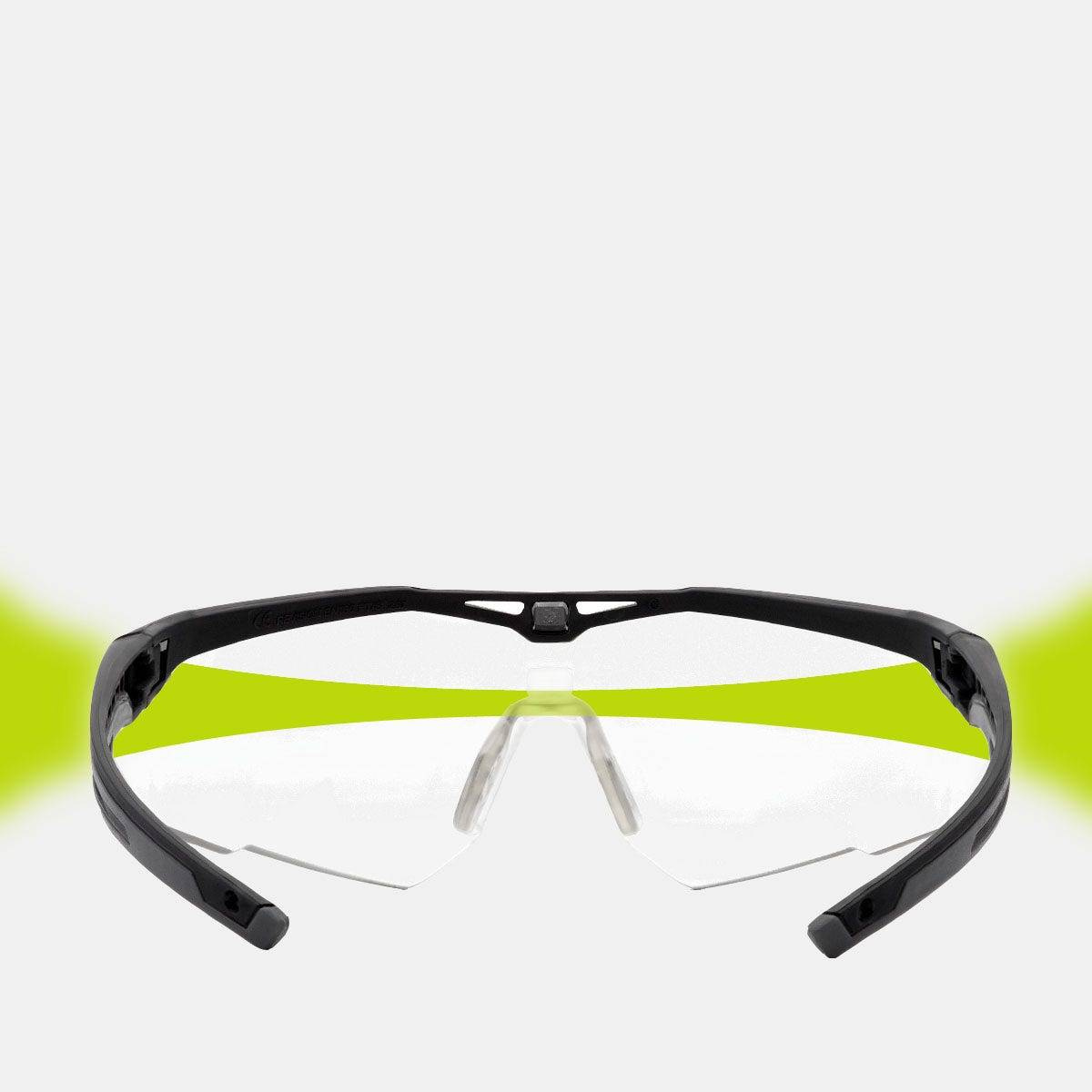 - interchangeable, optical grade polycarbonate lenses shield eyes from unexpected fragments, provide 100% protection from harmful UV-A, B and C rays, and ensure distortion-free vision for peak performance