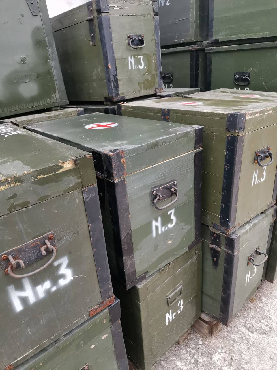 Wooden military crate for storage, Romanian Army surplus.