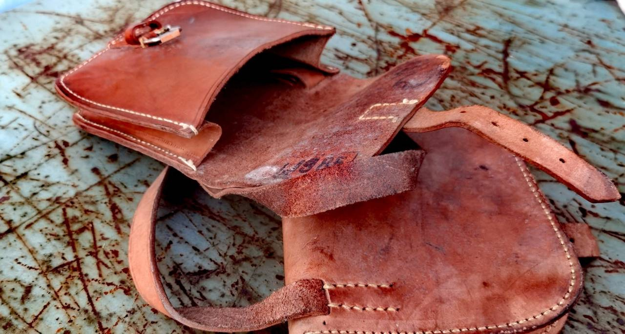 SMALL LEATHER BAG - BROWN - MILITARY SURPLUS ROMANIAN ARMY - USED