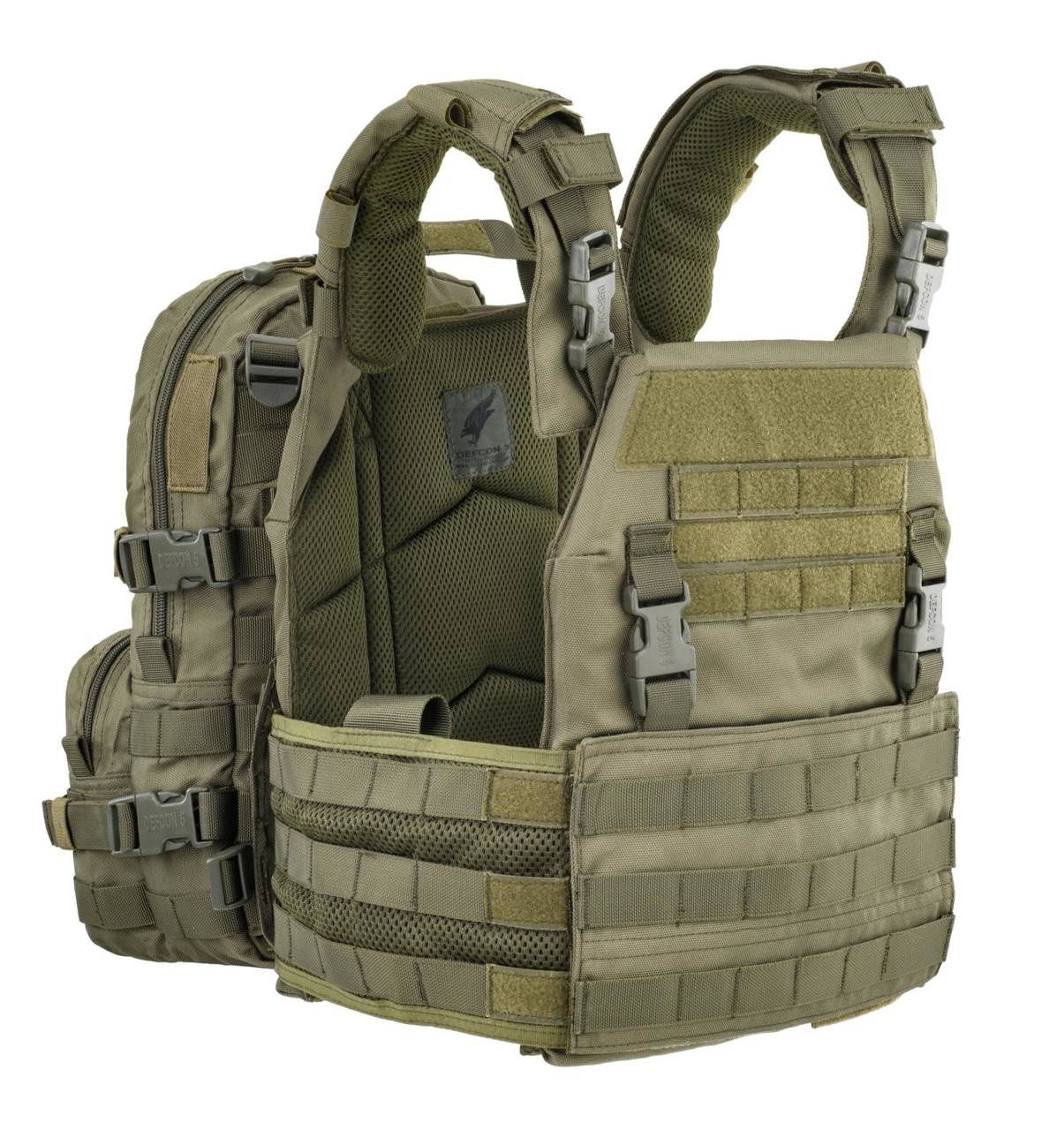 TACTICAL VEST FOR BALLISTIC PLATES - WITH INTEGRATED BACKPACK - Defcon 5® - OD GREEN