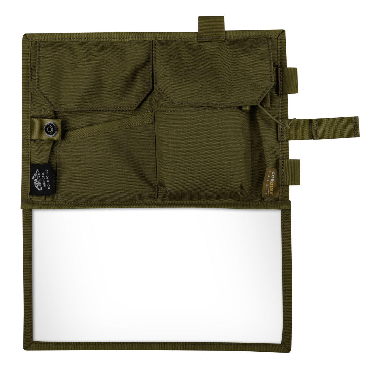 Map Case is a compact pouch that will let you carry your map in a transparent, zippered internal pocket, protecting it in any weather conditions. The pouch is made of durable, 500D Cordura® fabric. On the outside there are two pockets closed with snap buttons and two open-top, smaller pockets; additionally, on the side, there are loops for a pen, sharpie, or accessories. When not in use Map Case may be folded in half and secured with a snap button.