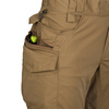 Pilgrim are highly durable and lightweight pants made of DuraCanvas® fabric. The pants have slightly risen back to protect your kidneys against cold. Additionally, this part is padded with thin foam to provide even more comfort during use. The pants have eight pockets total. Large, buttoned cargo pockets on thighs have internal mesh panels to provide additional ventilation when pockets are open. Classic hip pockets have reinforcements on edges to protect them from being damaged quickly by knife clips. Between cargo and hip pockets there are smaller zippered pockets. On the back, there are small buttoned pockets with reinforced edges. Waist and leg cuffs are adjustable. The pants have minimalistic loops for suspenders. Wide belt loops will fit up to 40mm belts, while additional loops on the front allow dummy cording. Additional visual features are the Helikon-Tex® branded buttons. To provide better protection against small rain, the fabric can be impregnated with special wax.