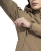 The concealed hood in the collar is easily accessible and 3-point adjustable, the large chest pockets have interior compartments for all necessary accessories, and the headphone cable outlet port is located on the right chest pocket. The sleeve pockets have Velcro straps, so the jacket can be customized with patches.