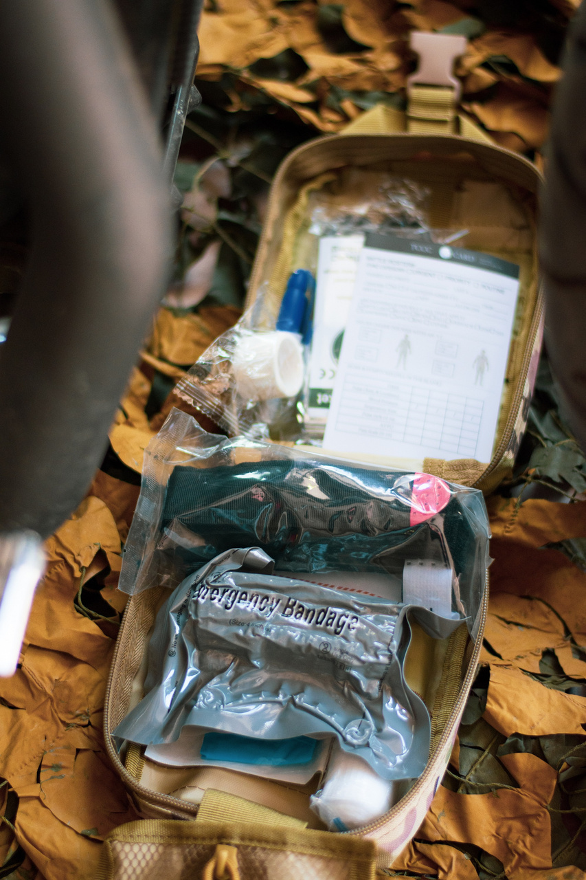 - practical first aid kit with first aid supplies included, ideal for outdoor sports such as camping or trekking, military tactical training, paintballing, etc.