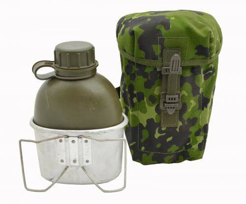 Danish PVC canteen with aluminum cup and M84 canteen cover.