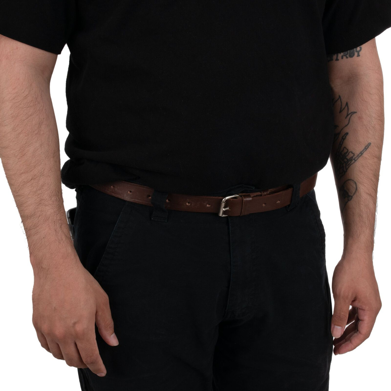 A nice narrow belt, the brown is painted on rather than using a paint that soaks into the leather, which won't develop a patina and show small cracks after wear. Overall good value for the price, 4/5