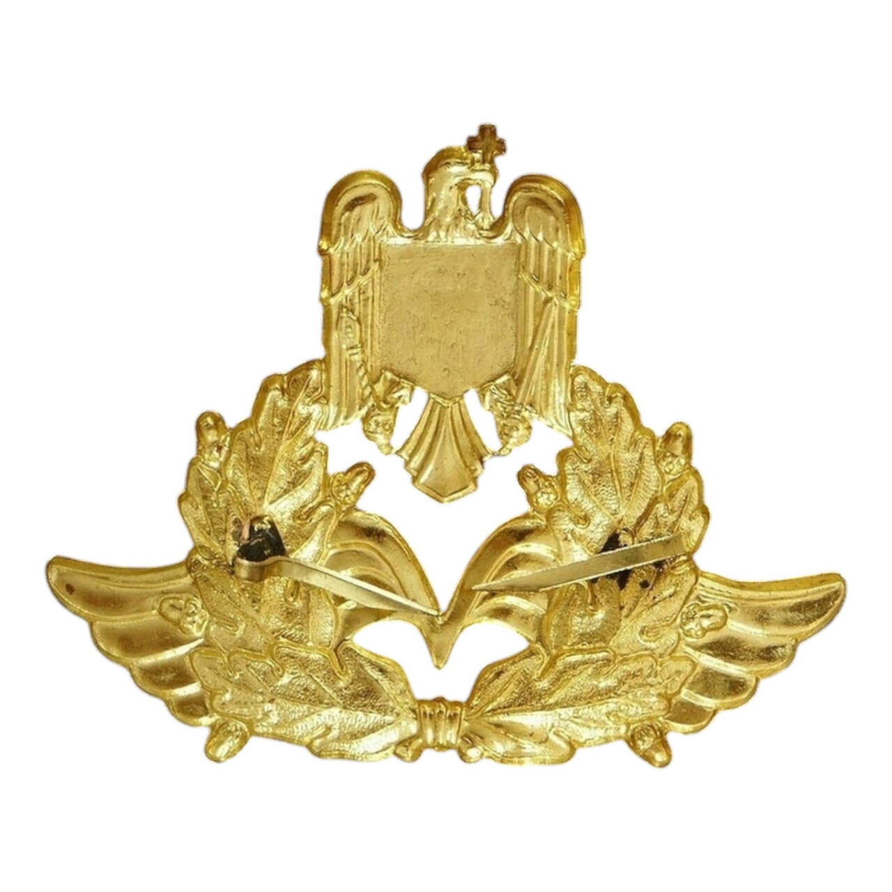 CAP BADGE - SENIOR AVIATION OFFICER, R.S.R. PILOT - ROMANIAN ARMY MILITARY SURPLUS - IN GOOD CONDITION