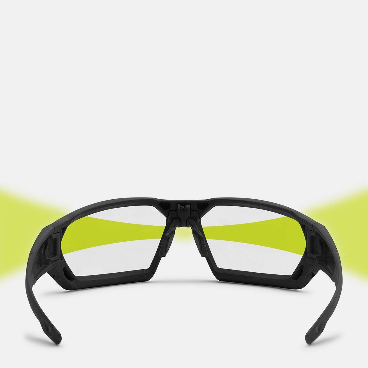 Interchangeable, optical-grade polycarbonate lenses shield eyes from unexpected fragments, provide 100% protection from harmful UV-A, B, and C rays, and ensure distortion-free vision for peak performance