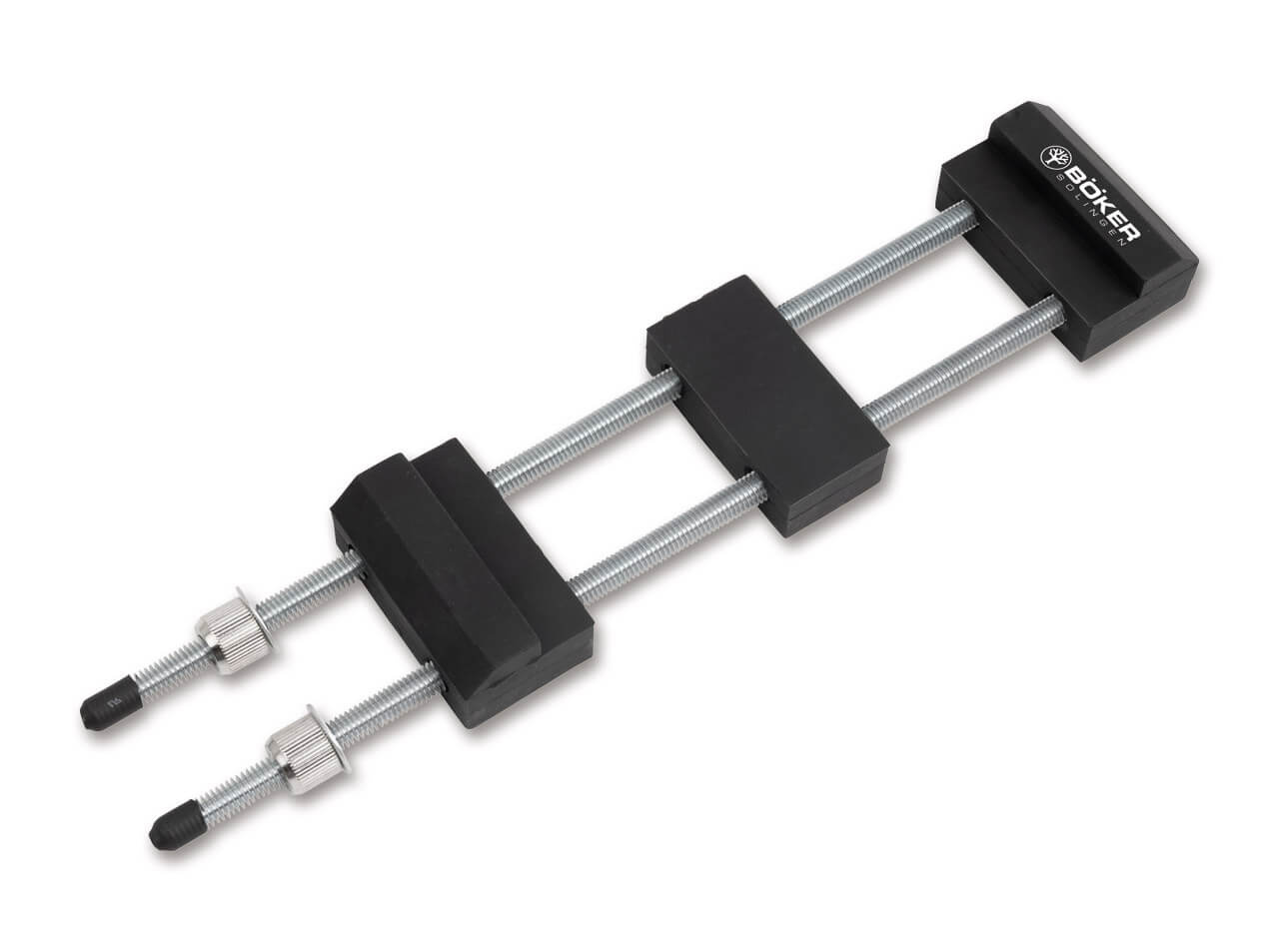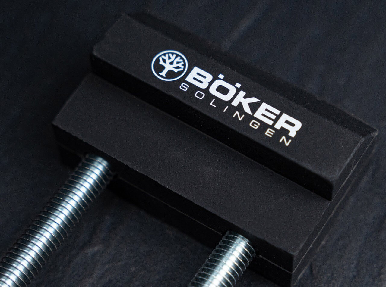 As a knife manufacturer with more than 150 years of history, Boker Manufaktur Solingen is now for the first time applying its expertise and experience to the development of its own series of abrasives for the discerning user. The carefully selected range includes classic but of course, innovative bench sharpening stones, pocket sharpening rods, and sharpeners, as well as sharpening pucks and accessories for every application scenario, whether it is for use on the kitchen table at home, in the workshop or on the road on a backpacking trip. In the case of technical ceramics, corundum, and diamond, only the best materials of the highest purity, homogeneity, and quality have been used in each case. Even the best and most expensive bench grindstone is of no use without a stable and level working surface as well as a non-slip support that connects the stone securely to the surface. The infinitely adjustable whetstone holder with rustproof screw threads and non-slip, moisture-resistant, and durable supports made of rubber-like silica gel is ideal for this purpose. Universally applicable for grinding stones and diamond plates from 60 to 217 mm.