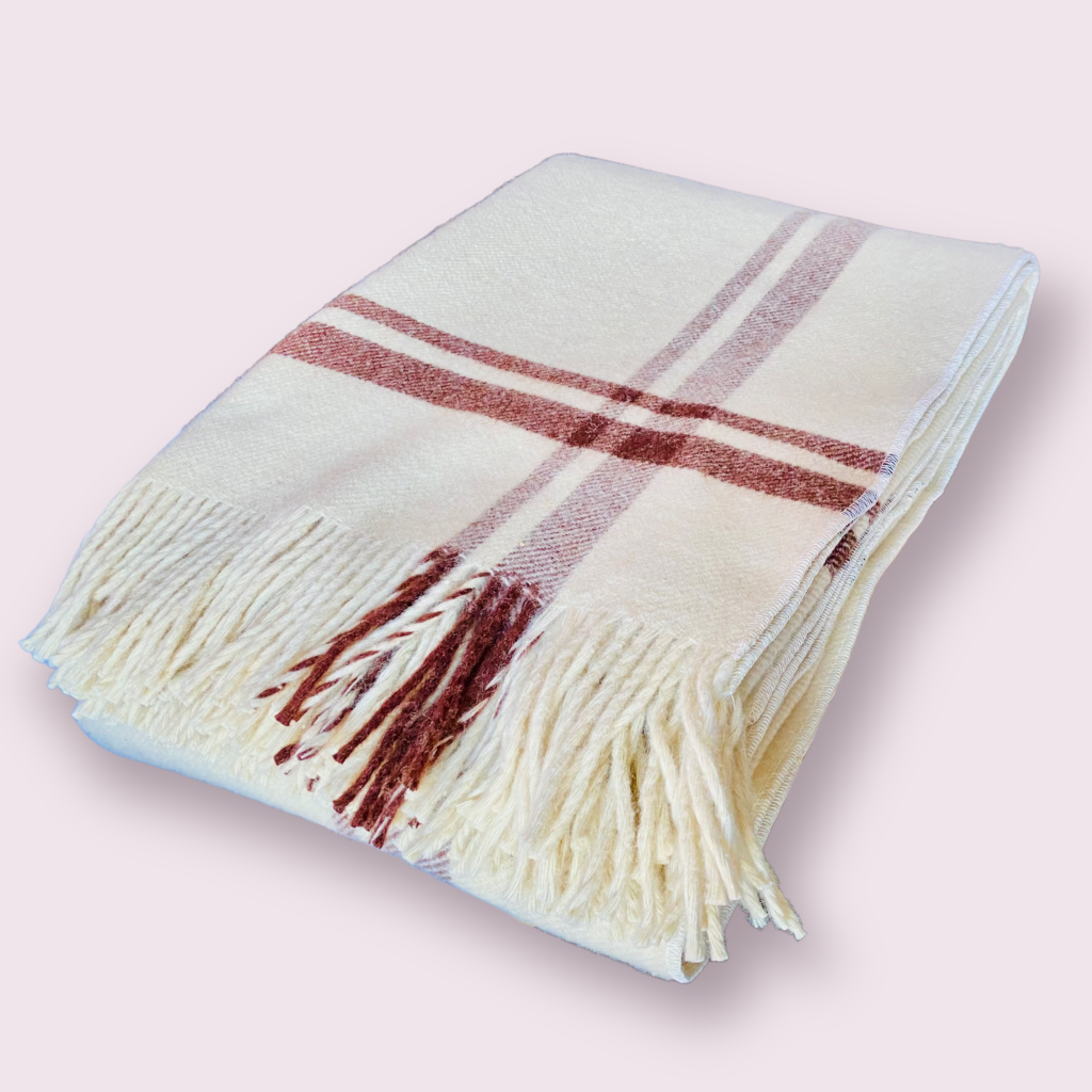 • Merino wool blanket, Natur pattern with fringes, 150x230cm, white/cream