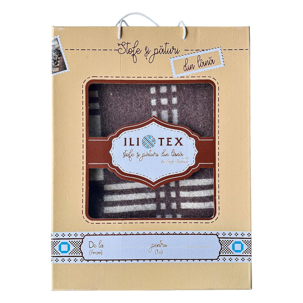 Romanian wool blanket, traditional pattern, 150x200cm, brown/white